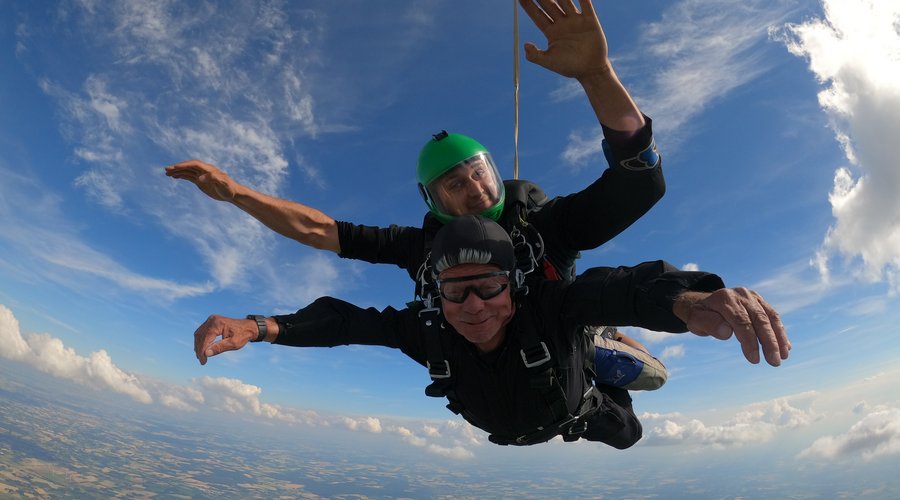 Ein großartiges Erlebnis wartet auf dich: Es ist ganz einfach, den freien Fall zu genießen. Fest verbunden mit einem unserer erfahrenen Tandemmaster wagst du den Sprung in die Tiefe.